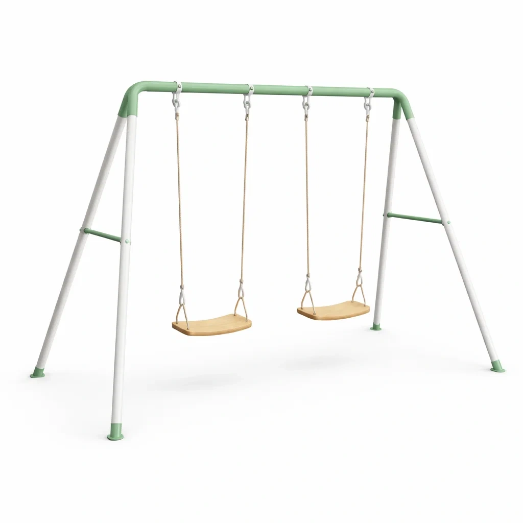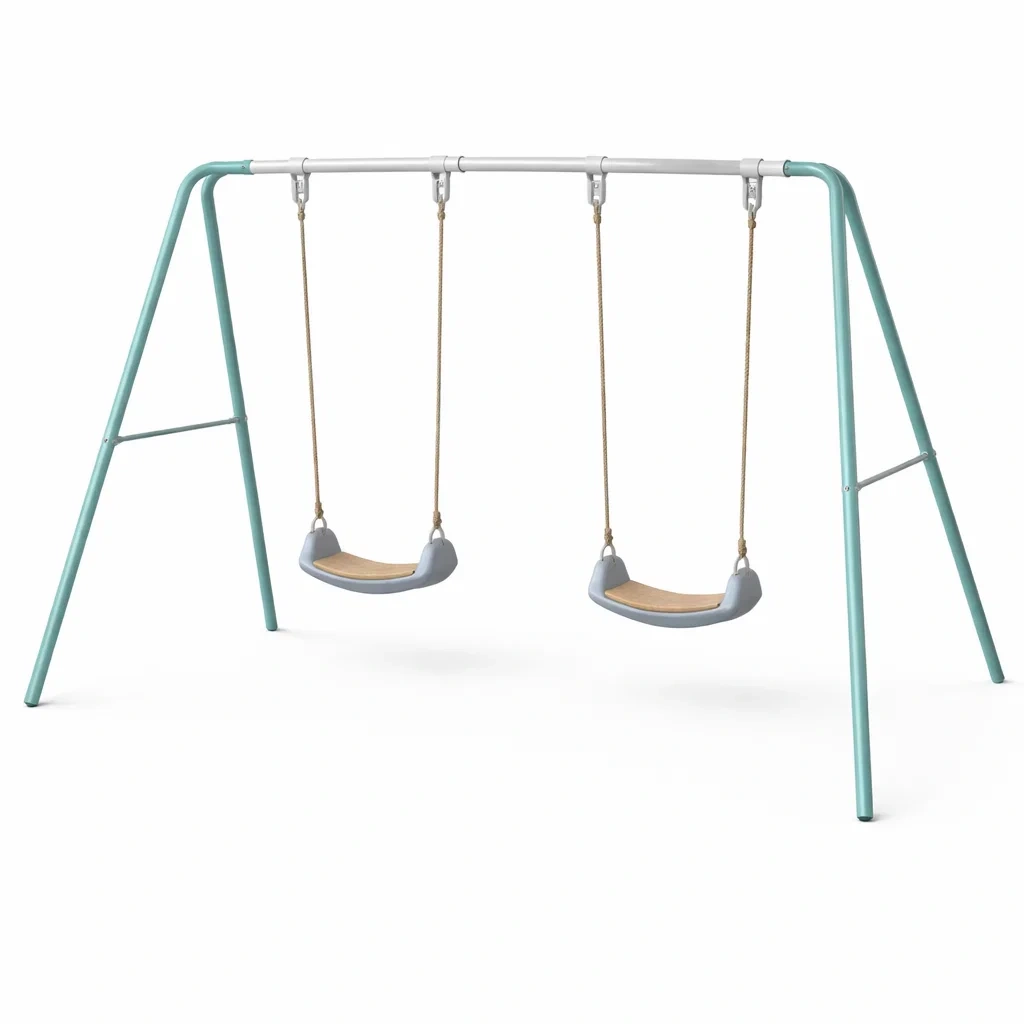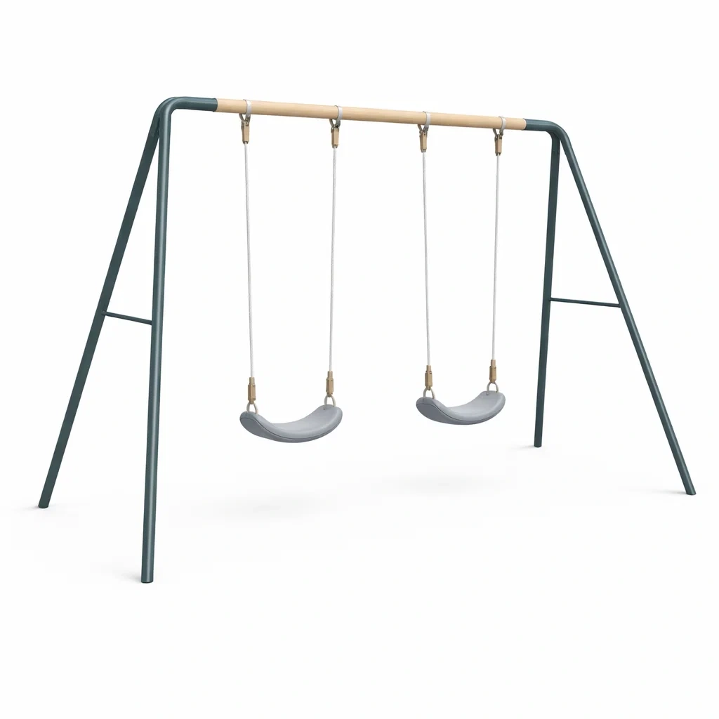 Ensemble de balançoires double en acier avec assise en bois