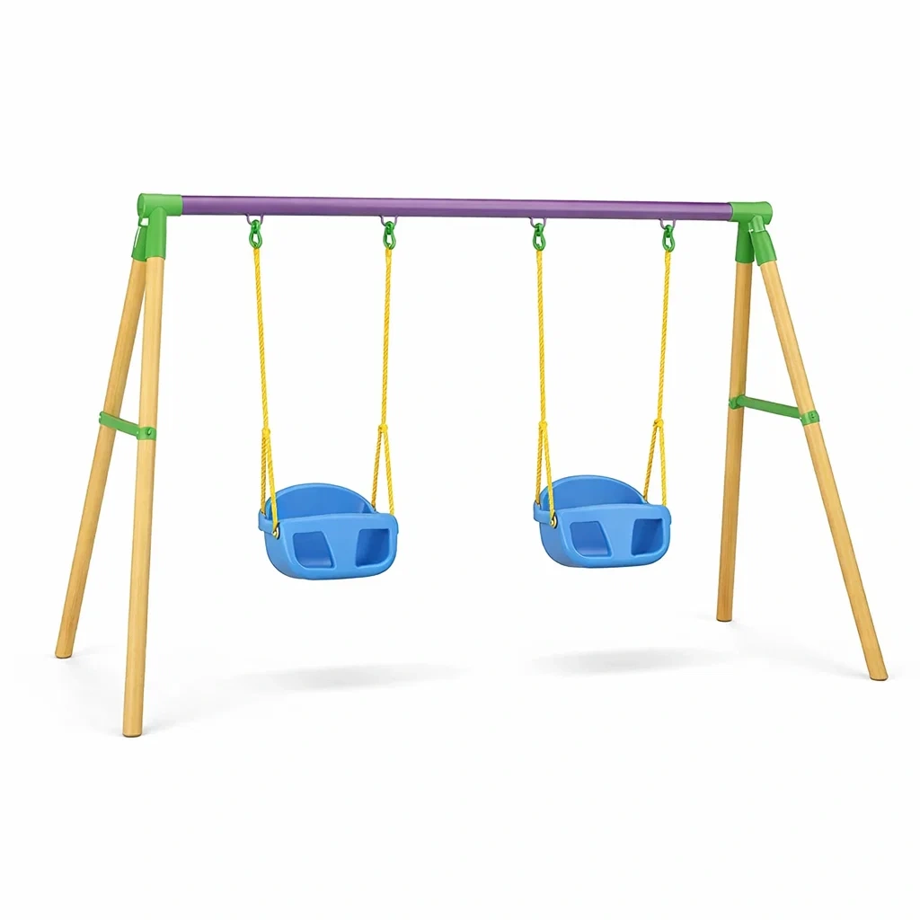 Ensemble de balançoires double en plastique et bois pour enfants
