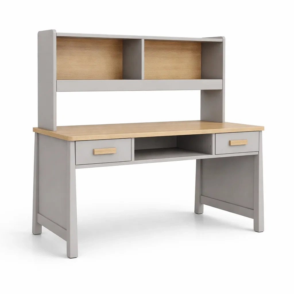 - Inclut : Bureau avec deux tiroirs et une étagère